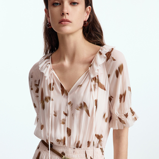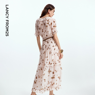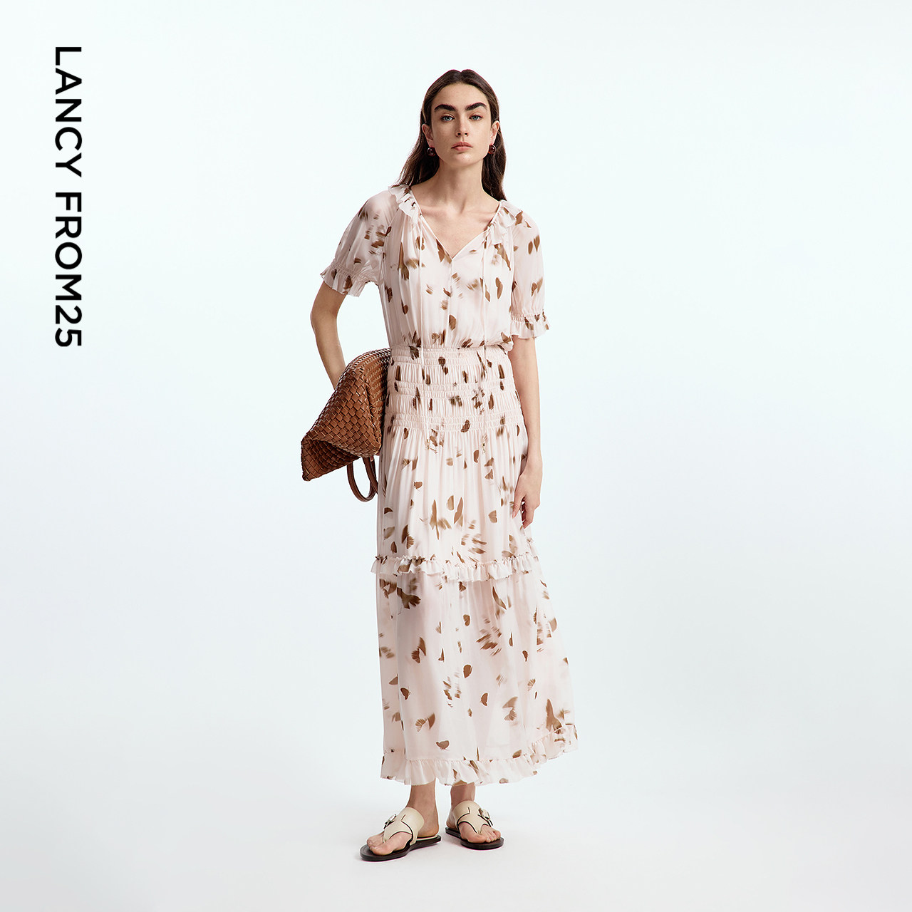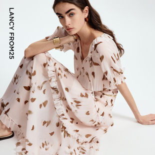 新款 朗姿荷叶边领粉色长裙度假气质2025年夏季 连衣裙 漾25系列