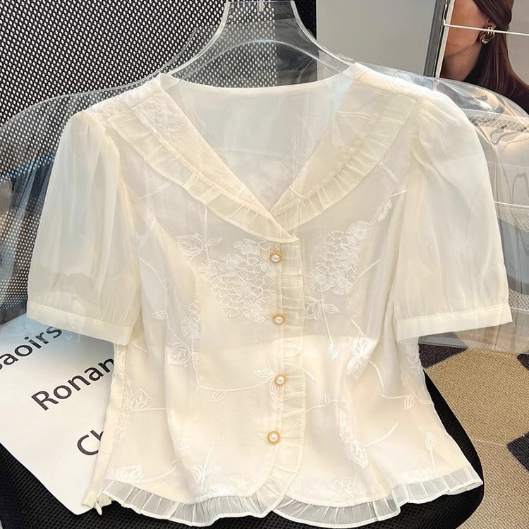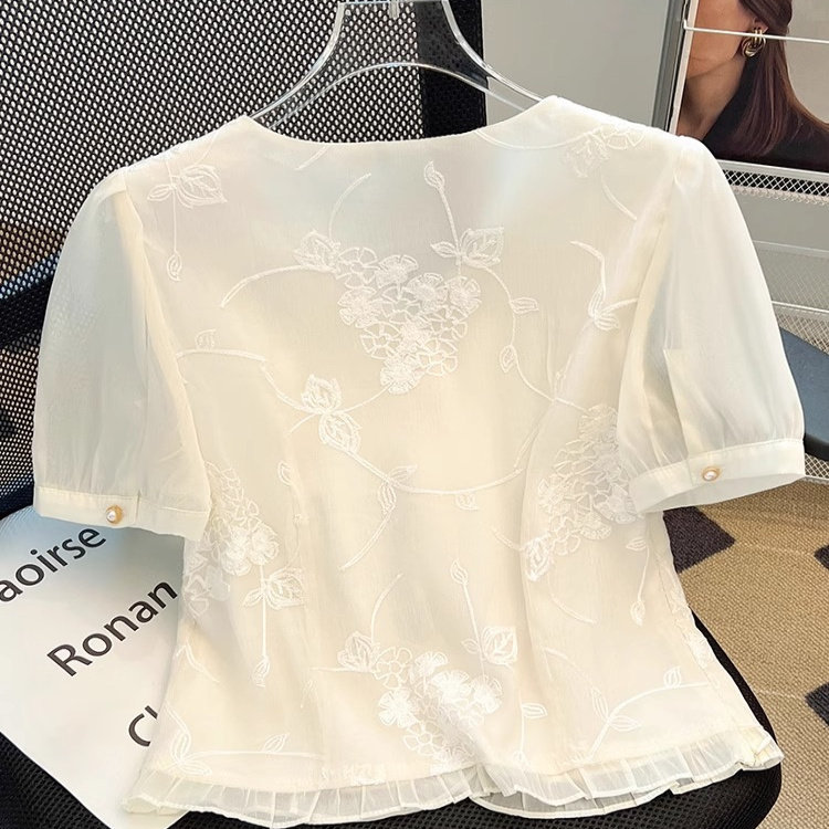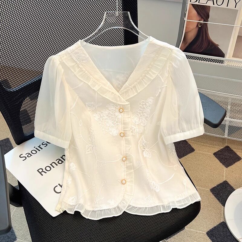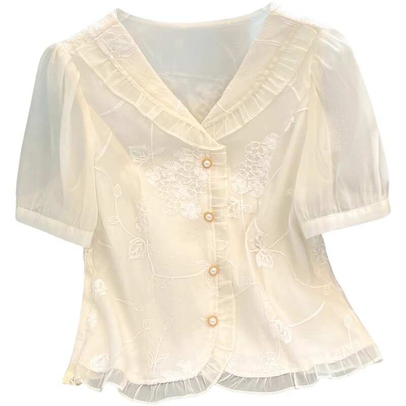 v领衬衫 女2025新款 夏季 爆款 时尚 白色小香风短袖 小衫 减龄上衣 推荐