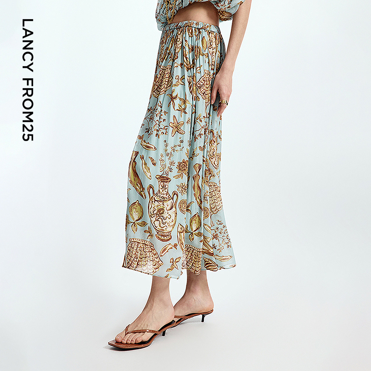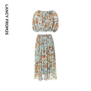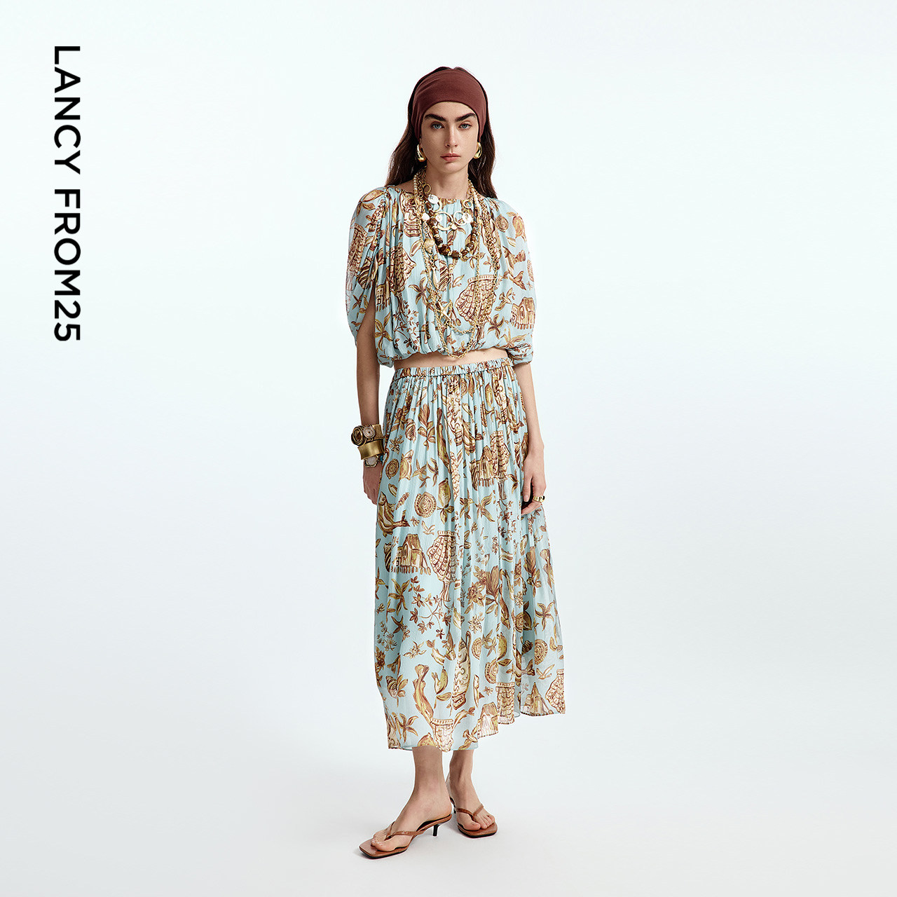 新款 半身裙2025年夏季 朗姿印花高级感度假风衬衫 女 漾25系列