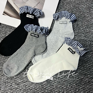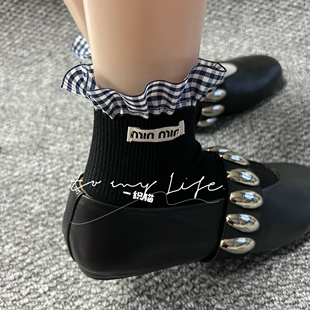 欧货潮袜25春夏新款 女袜潮牌m字母拼接蕾丝花边短袜甜美网红潮袜