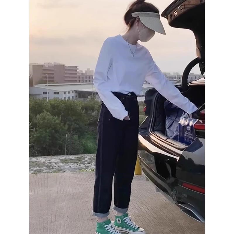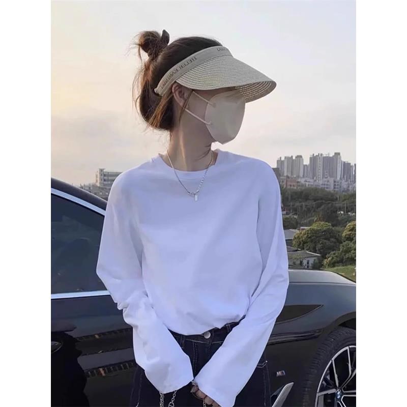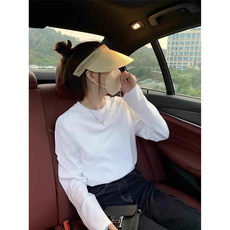 白色德绒长袖 上衣 T恤女秋冬百搭宽松圆领正肩体恤加绒内搭打底衫