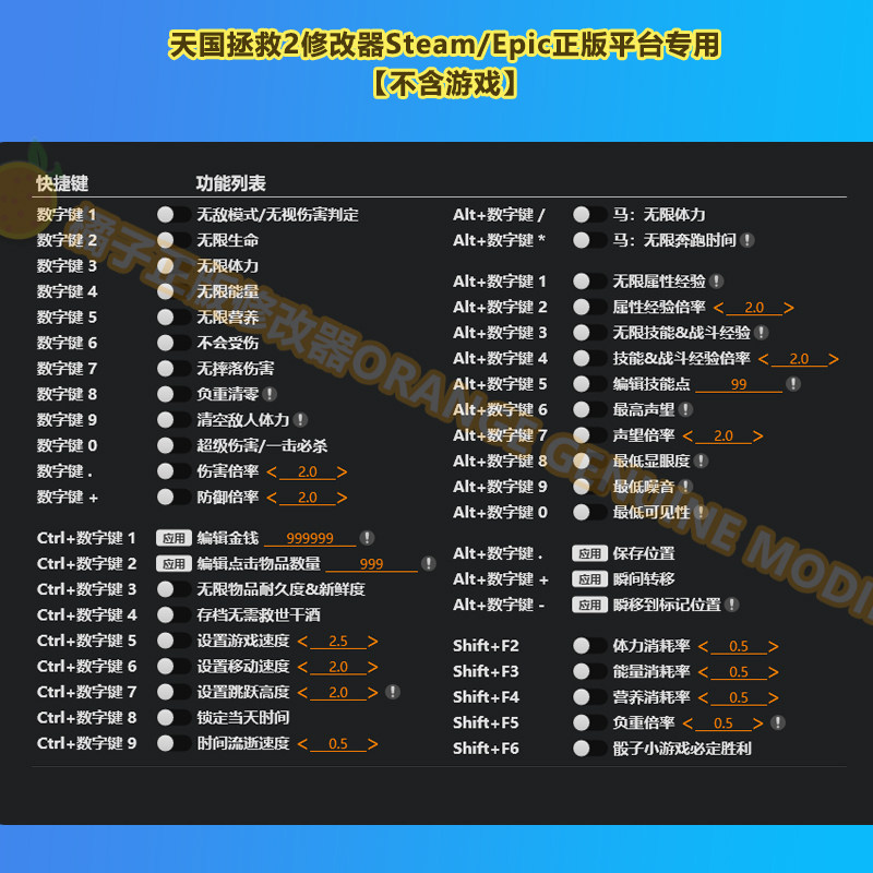 WIN不含游戏 工具存档 天国拯救2修改器 Steam辅助epic科技正版