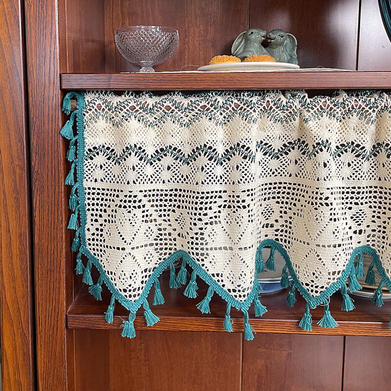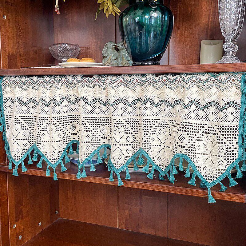 美式 蕾丝窗帘半帘帘头门帘隔断帘窗户厨房书柜短帘窗幔 棉线短款