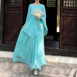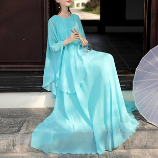 春夏新款 沙滩旅游拍照真丝桑蚕丝连衣裙假两件长裙 超仙国风新中式