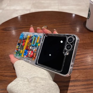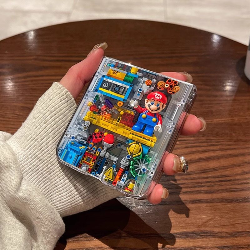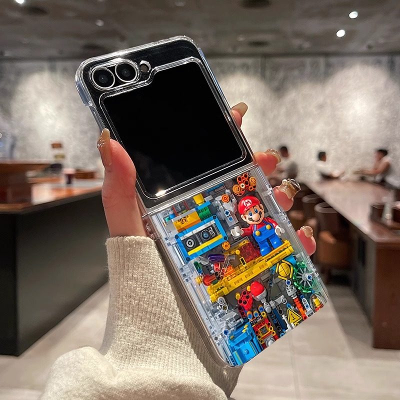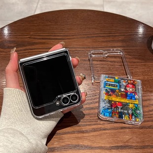 w23折叠屏超薄透明积木马里奥全包防摔男女款 适用三星zflip6 zflip3手机壳w24新款 zflip4 硬壳保护套 zflip5