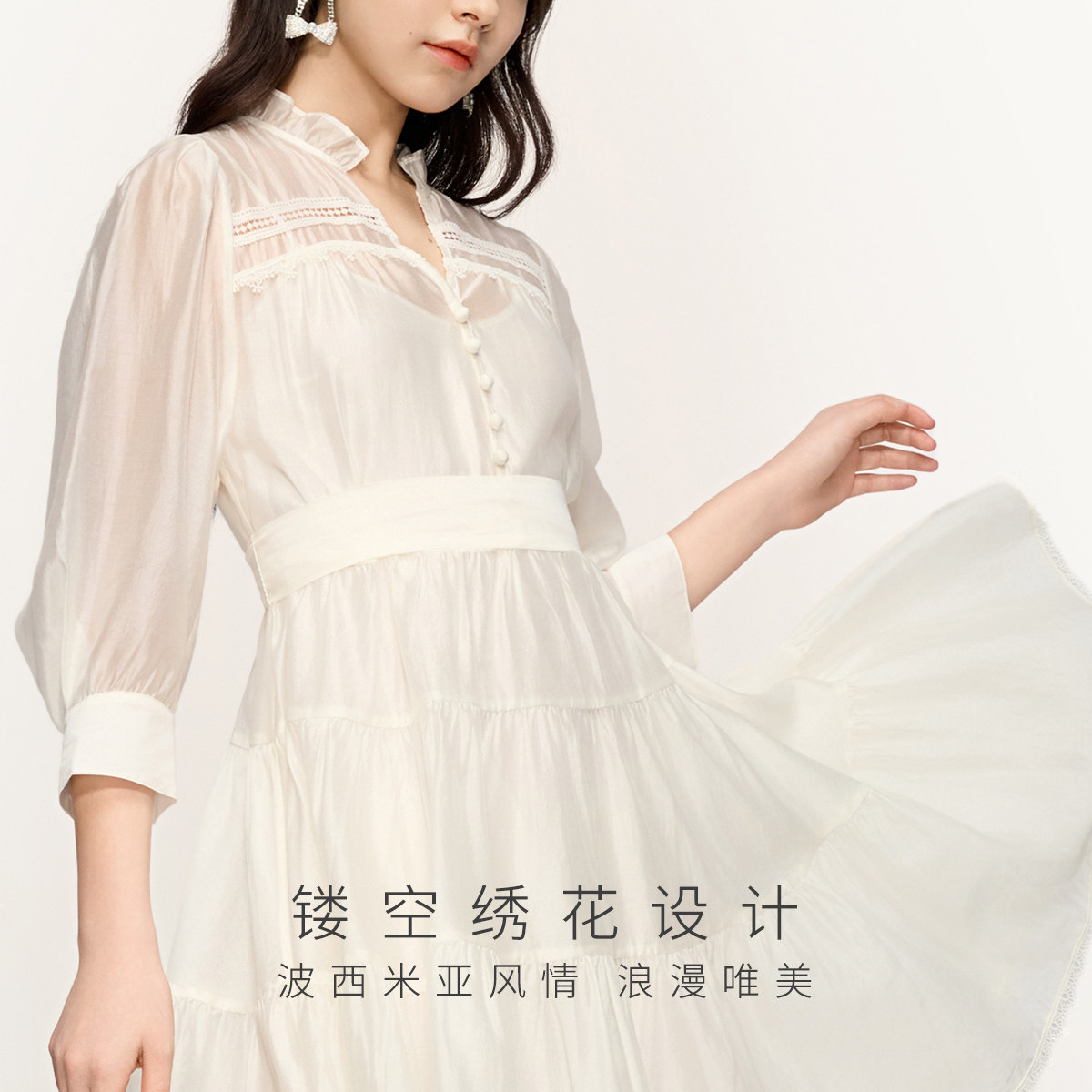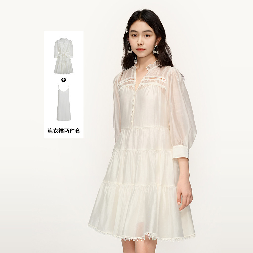 女春装 2026新款 PLUS连衣裙莱赛尔天丝波嬉风吊带裙两件套装 FIVE