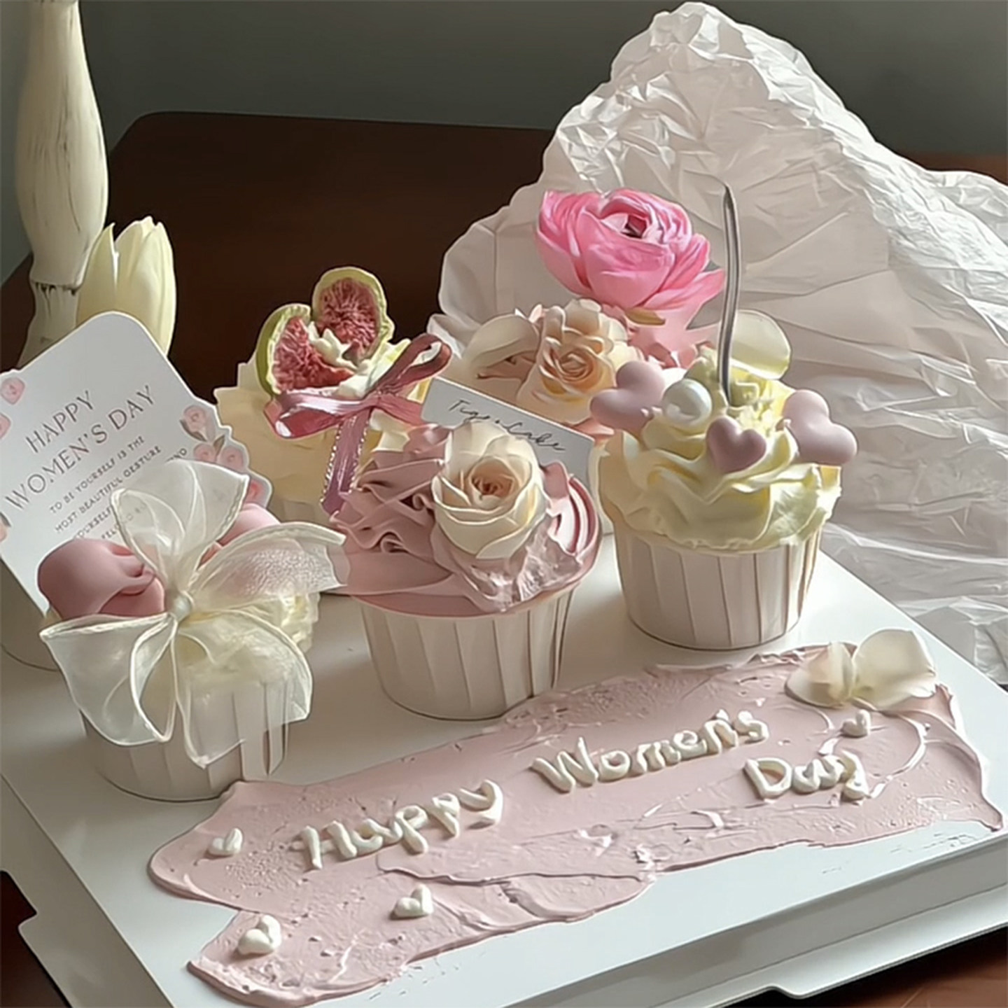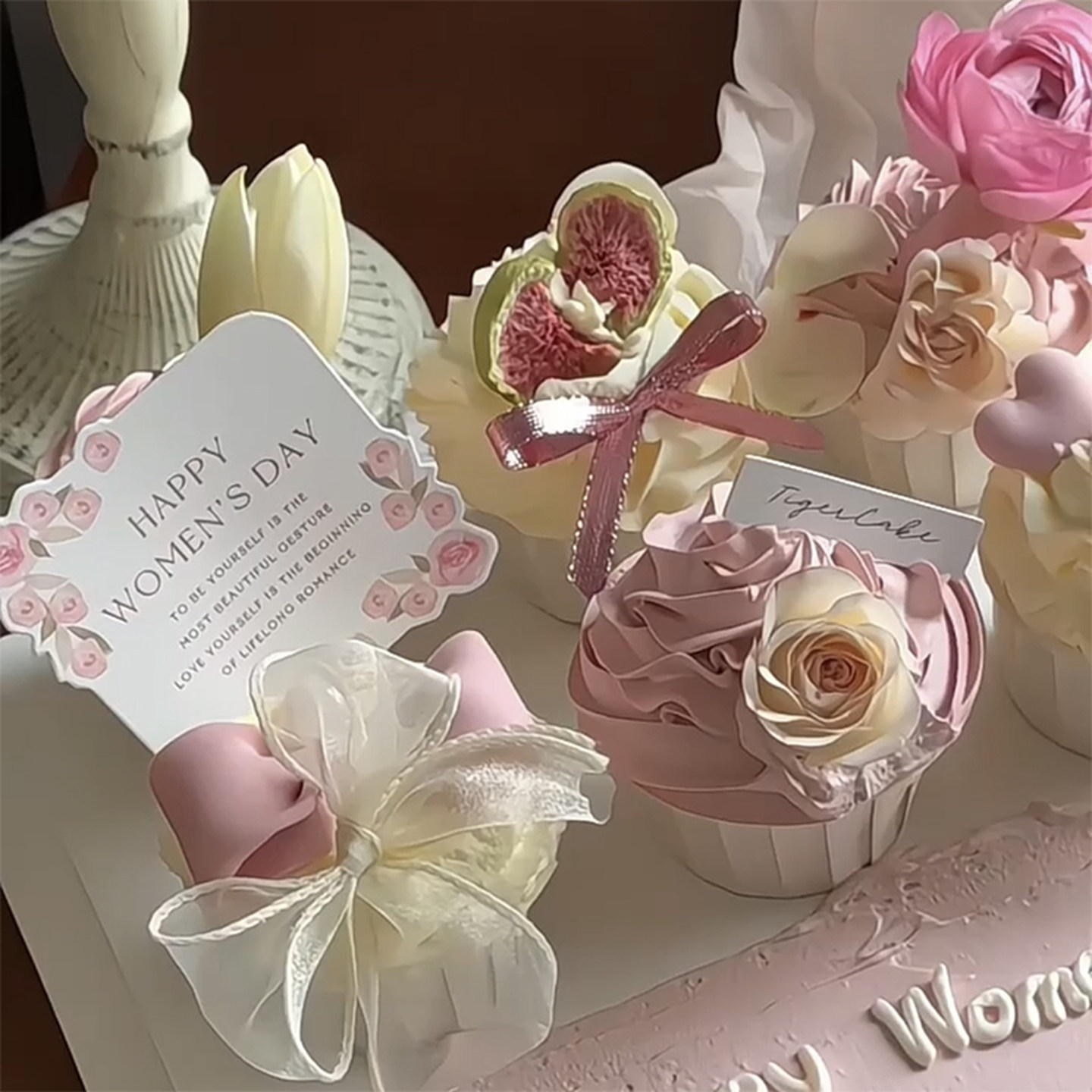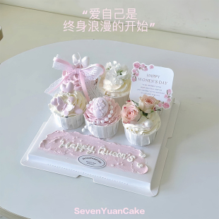 网红38女神节妇女纸杯蛋糕装 盒 饰插件爱心花朵卡片甜品丝带包装
