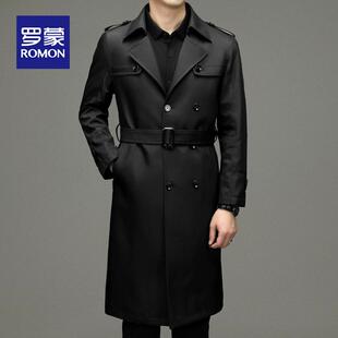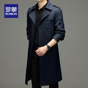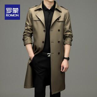 男装 罗蒙男士 商务休闲秋季 风衣2025新款 外套中年翻领夹克外套 长款
