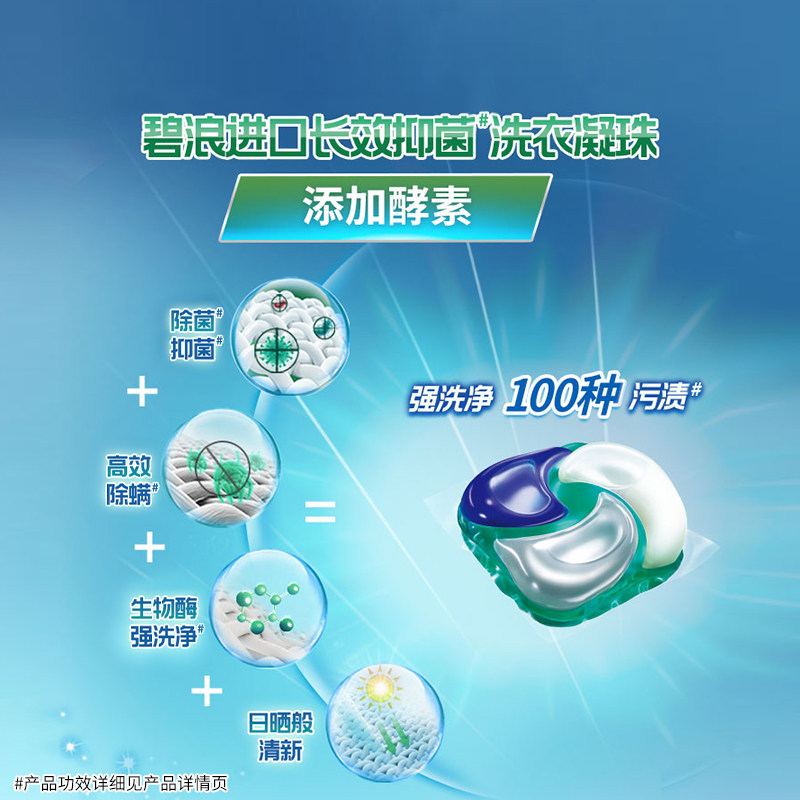 碧浪进口4D洗衣凝珠20颗 家用 2盒除螨杀菌长效抑菌持久正品