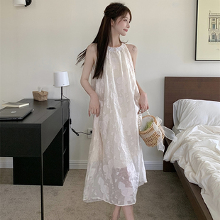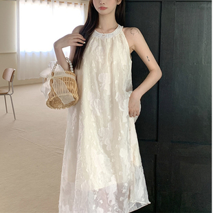 胖mm减龄雪纺蕾丝钩花露肩裙子 大码 无袖 挂脖连衣裙女春夏2025新款