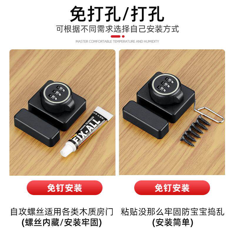 免打孔密码 锁 锁家用柜子柜门锁抽屉锁防盗锁推拉门房间双开密码