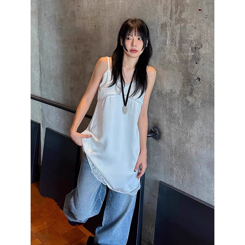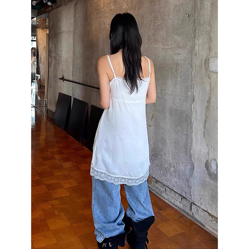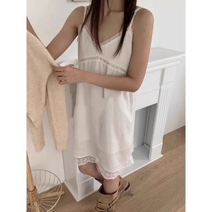 减龄宽松短裙子 法式 良良家拼接蕾丝花边内搭吊带连衣裙女夏季 新款