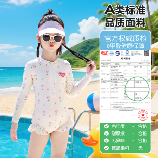 回力儿童泳衣女中小童连体专业游泳衣女童可爱婴幼儿长袖 防晒泳装