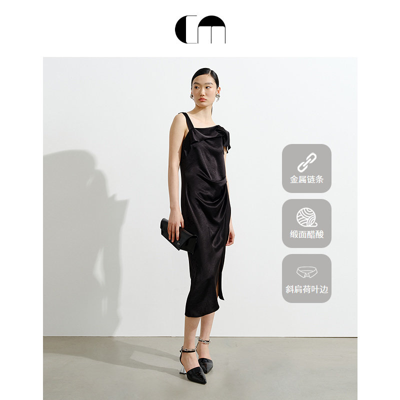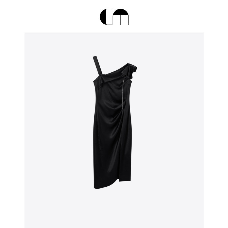 黑色法式 女装 不对称连衣裙 MOI吕燕设计师早春款 COMME