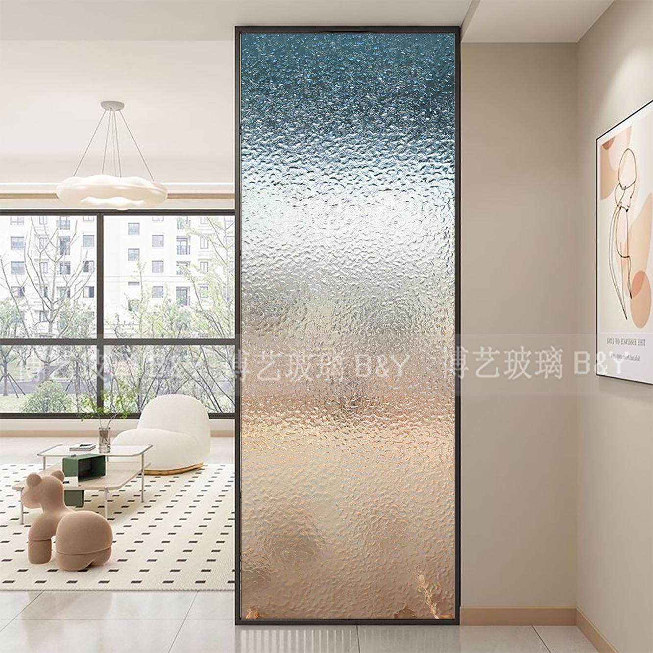 钢化长虹水波纹水立方艺术玻璃隔断屏风客厅玄关淋浴室卫生间半墙