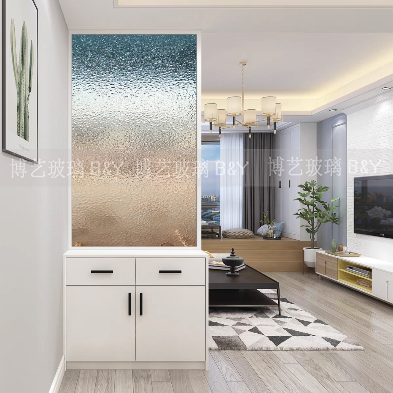 长虹艺术玻璃卧室卫生间水波纹水立方半墙屏风隔断入户客厅玄关