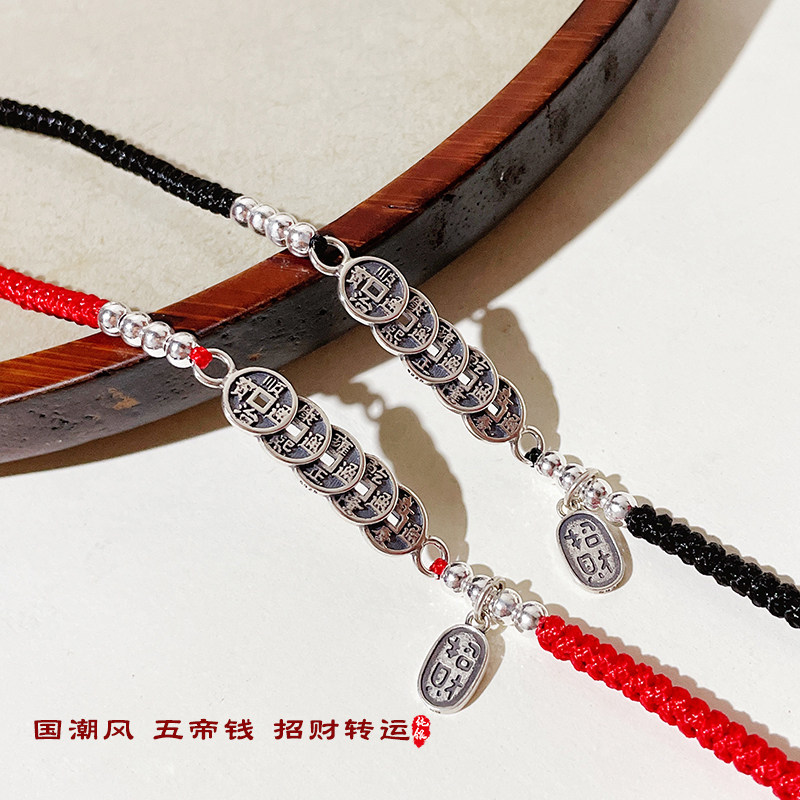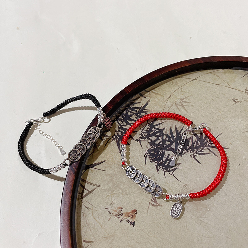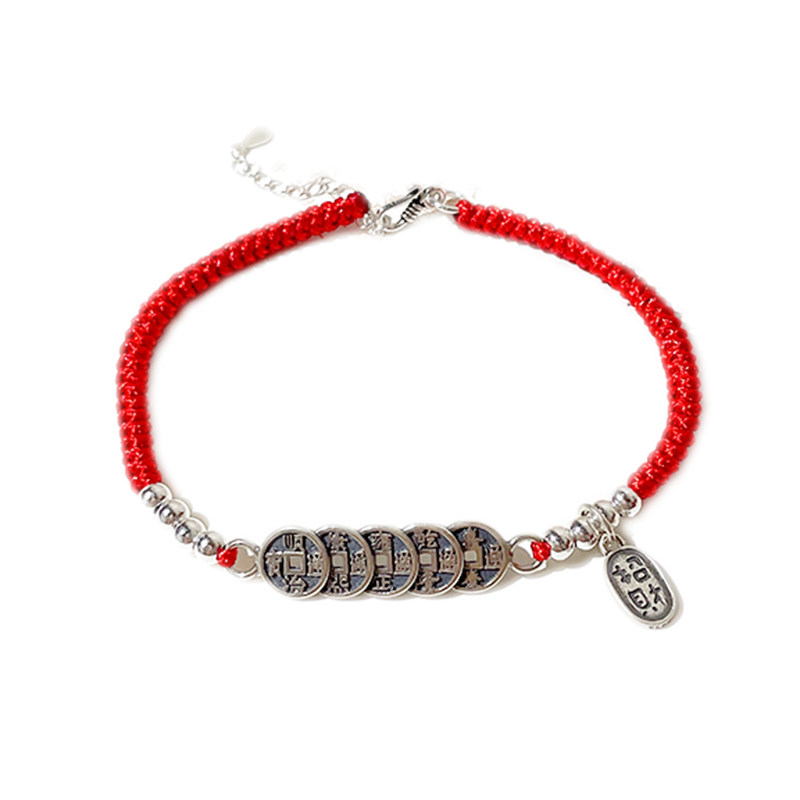 复古五帝币铜钱红绳脚链招财纳福足链异域风情脚环腿环转运珠脚绳