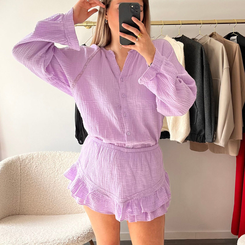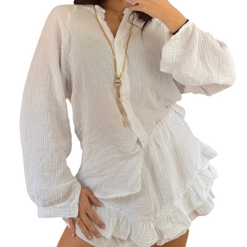 set for 2025套装 piece 女士V领纽扣 home nightgown Two women