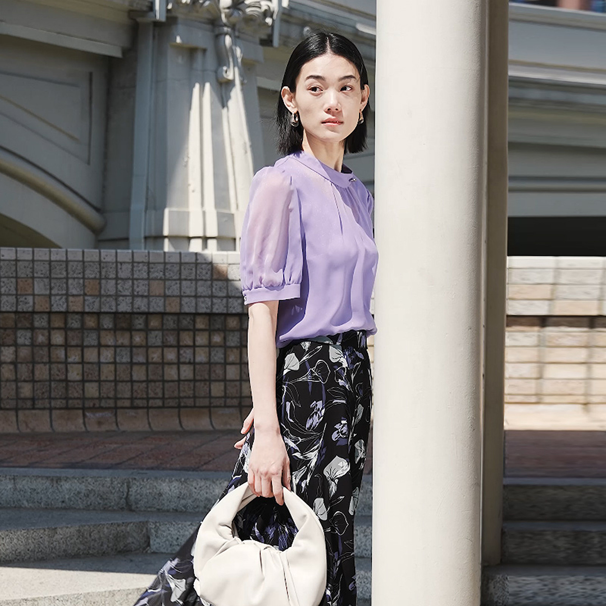 上衣女夏款 CADIDL卡迪黛尔商场同款 雪纺衫 穿搭优雅气质修身 夏季