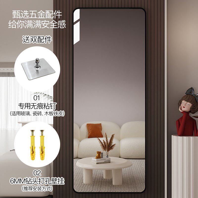 轻奢全身镜壁挂式 家用穿衣镜卧室挂墙镜子贴墙自粘入户玄关试衣镜