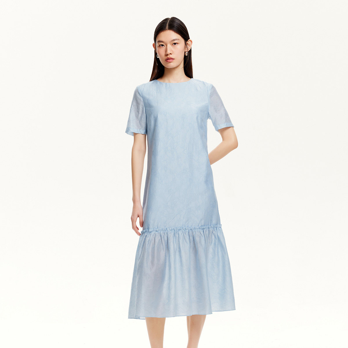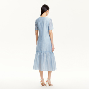 绫致Vero Moda连衣裙春夏下摆拼接抽褶肌理感连衣裙优雅