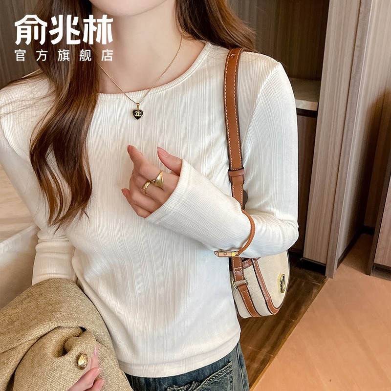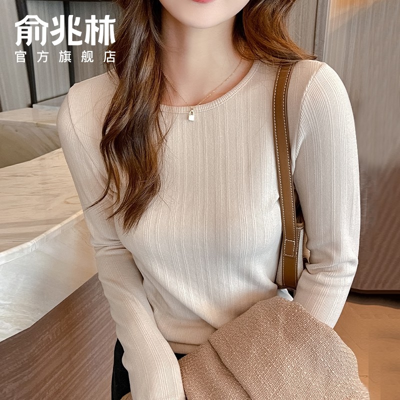 保暖杏色长袖 秋冬低领修身 高级感可外穿 女内搭2025新款 圆领打底衫