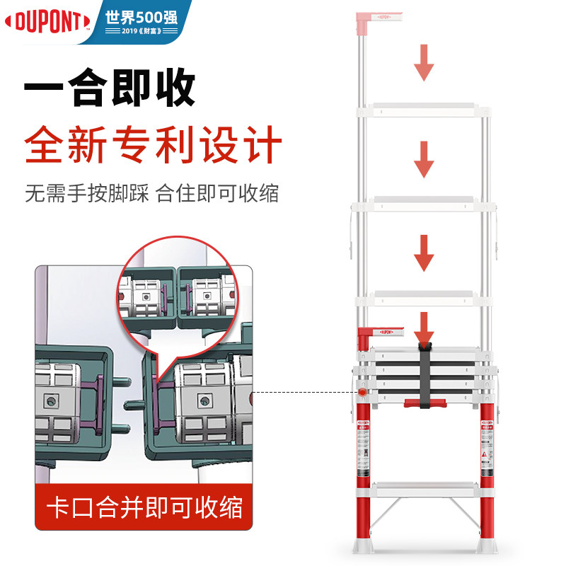 加多奇铝合金梯家用折叠梯直梯室内升缩扶梯可折叠便携收纳室内