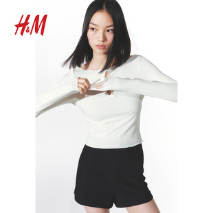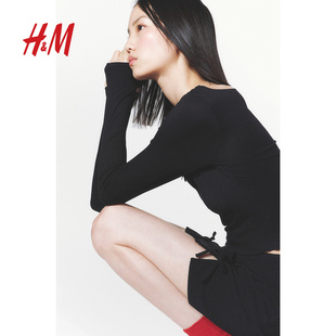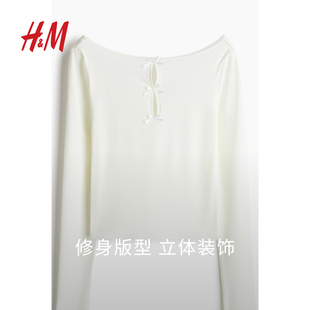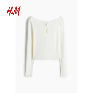 内搭修身 HM女装 圆领蝴蝶结打底衫 新款 上衣1271124 T恤2025年冬季