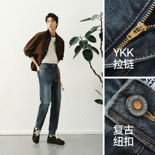 01115690 磨白中腰宽松直筒牛仔裤 佐丹奴复古水洗牛仔裤 男秋冬新款
