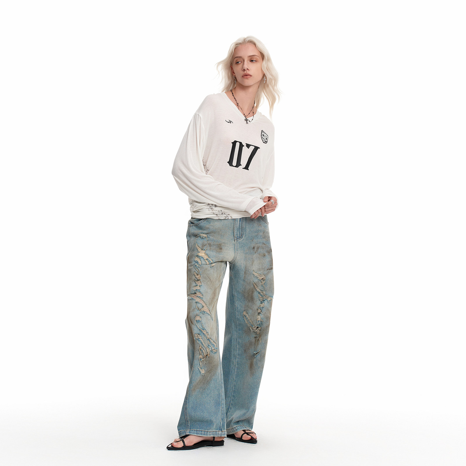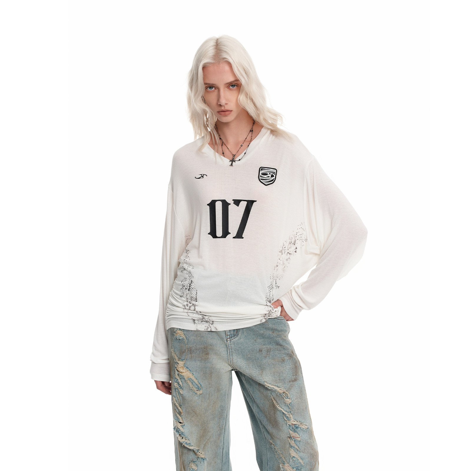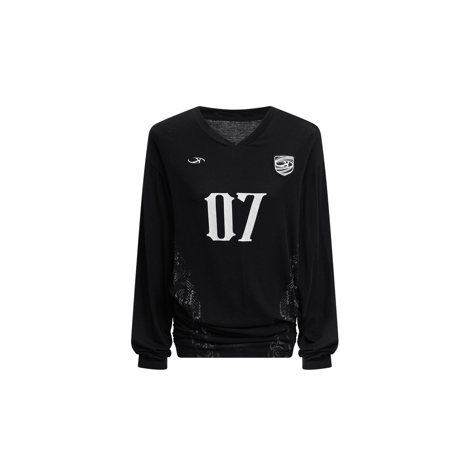 新款 复古春季 甜辣上衣X 黑色字母印花宽松美式 IMXS收腰V领球衣罩衫