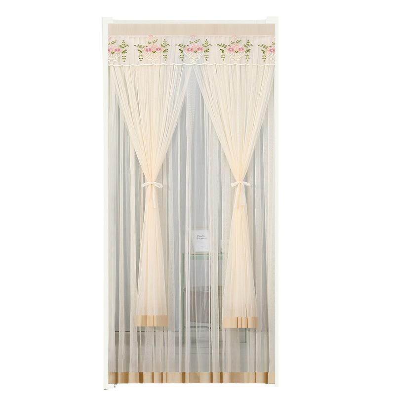 法式 蕾丝窗帘白纱纱帘钉珠免打孔魔术贴门帘阳台客厅成品窗帘门帘