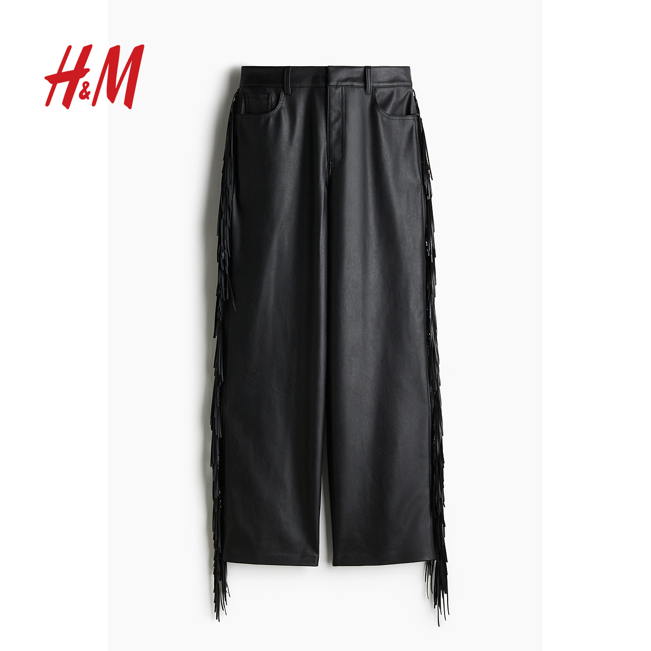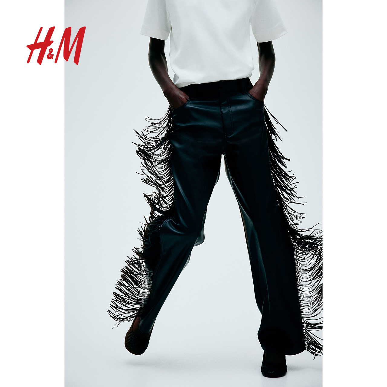 致臻系列 中腰直筒流苏涂层长裤 HM女装 2025秋季 1273181 休闲裤