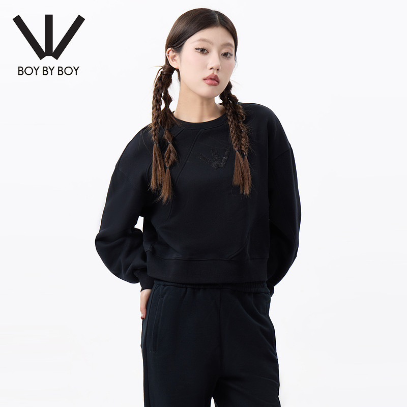 潮牌女装 BOY商场同款 春秋宽松舒适圆领套头卫衣W03009 BOY