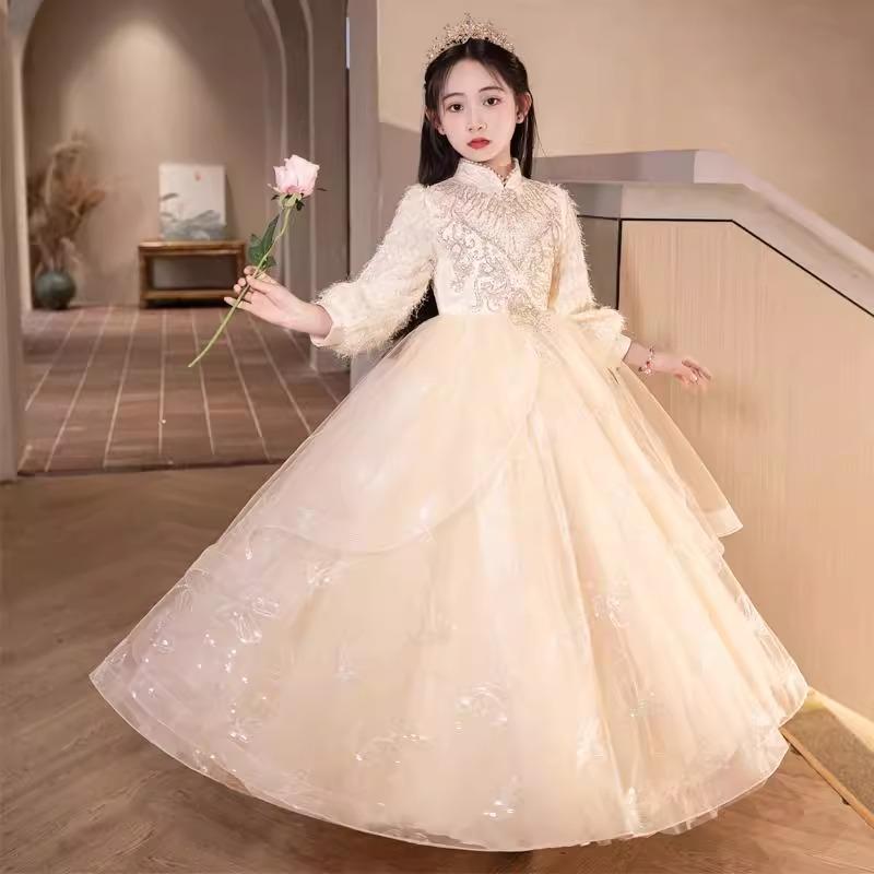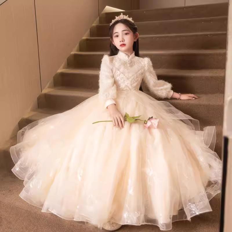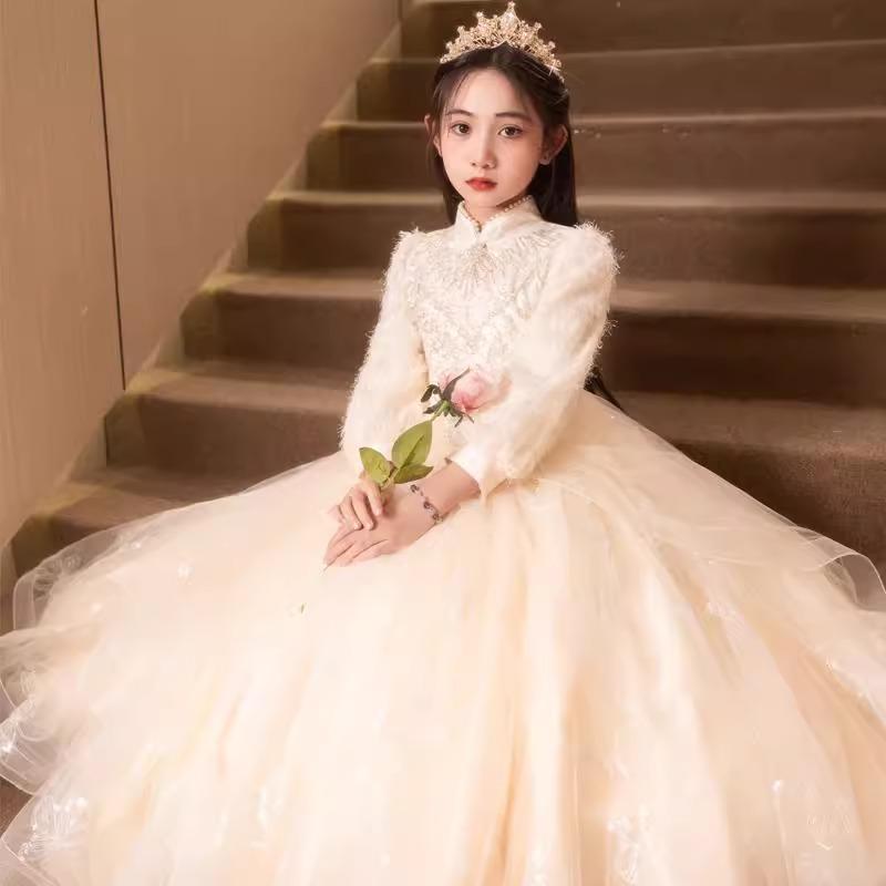 女童轻奢高端小众礼服公主裙儿童加厚花童蓬蓬纱裙女孩钢琴演出服
