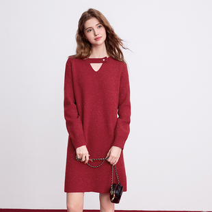 betu百图新年红色针织连衣裙女2025年冬季 慵懒风氛围感毛衣裙 新款