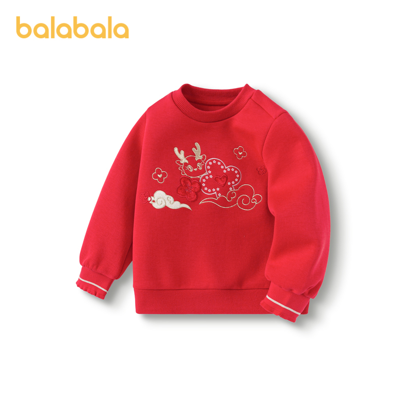 巴拉巴拉儿童卫衣女童绣花T恤2025年春秋季 小童上衣百搭上衣 新款