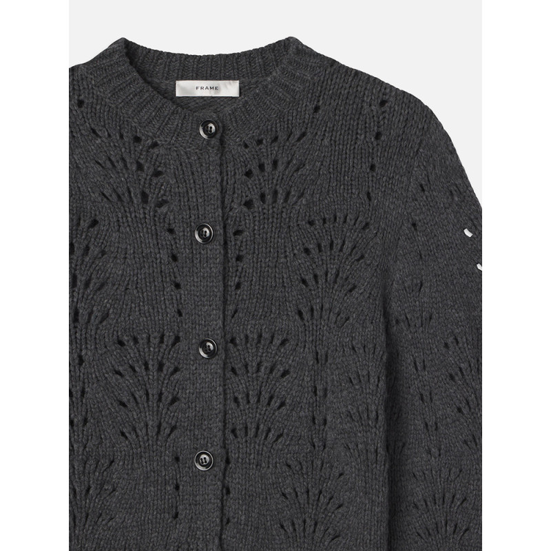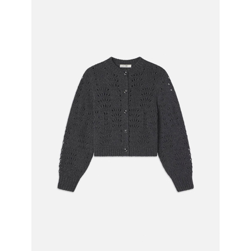 外套叠穿 FRAME女士灰色钩织镂空针织毛衣开衫 秋冬新款