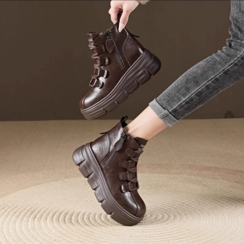 靴厚底马丁靴羊皮短靴WXB06DD5 加绒英伦工装 TATA他她靴子女鞋 冬季