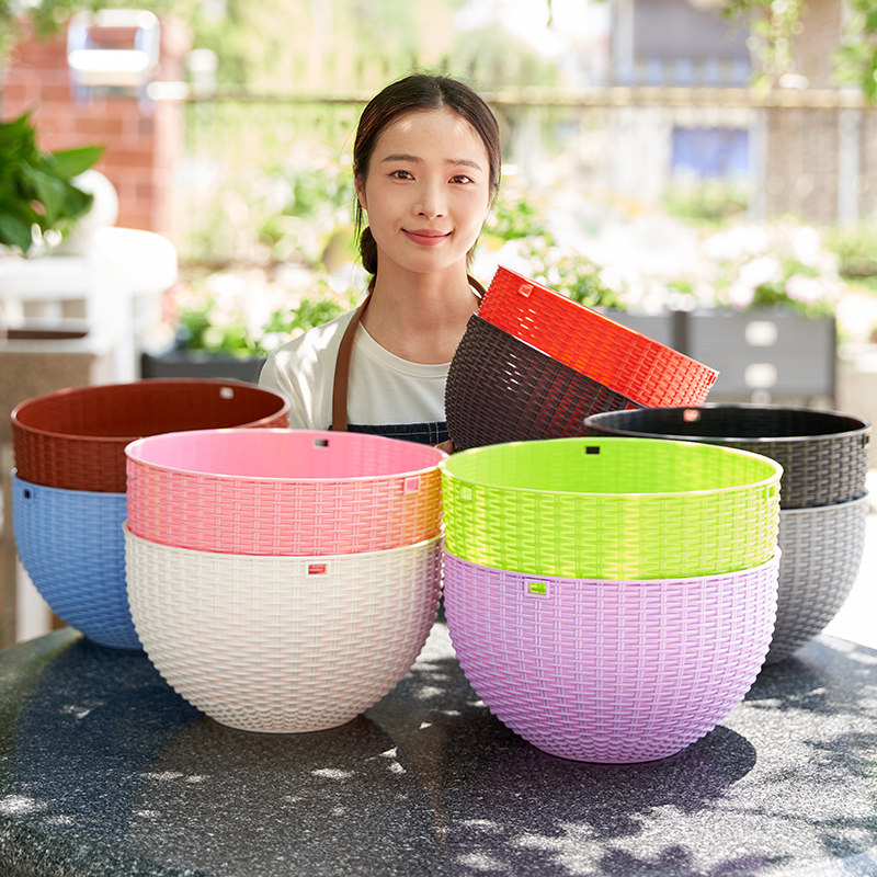 垂吊吊兰花盆悬挂式 塑料藤编吊篮懒人吸水挂壁绿萝常春藤吊球加厚