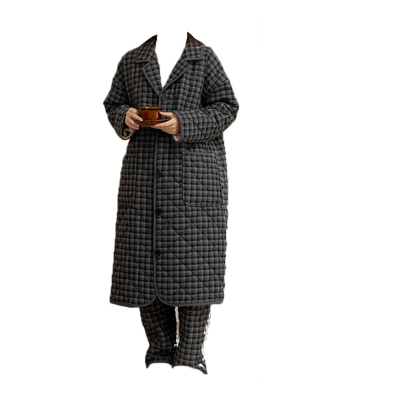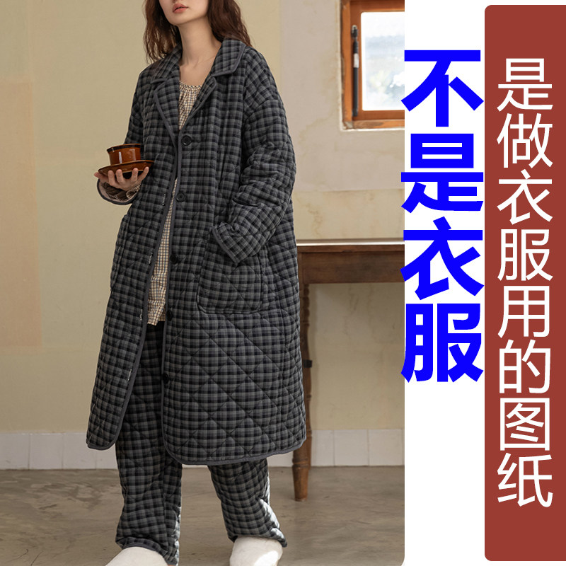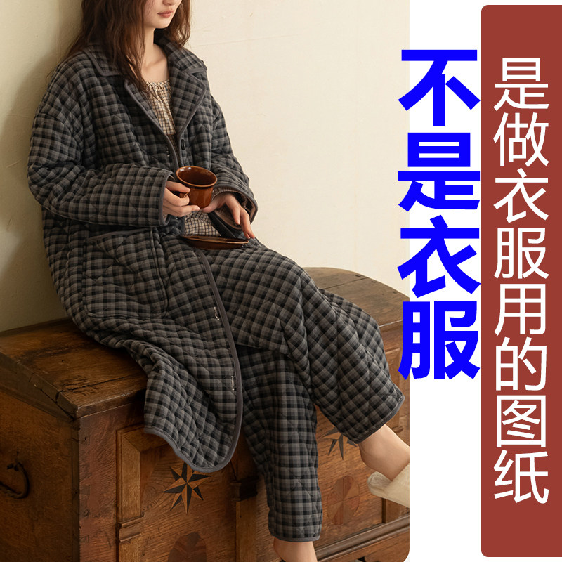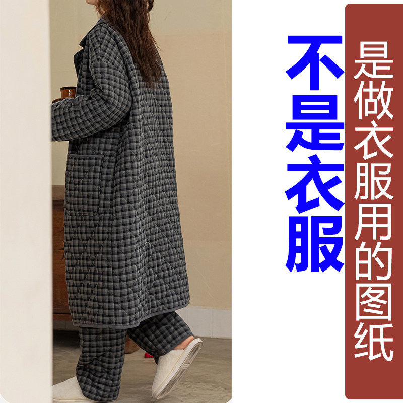 家居服加工定制图纸 新款 QW314冬季 小翻领夹棉加厚格子睡袍女纸样