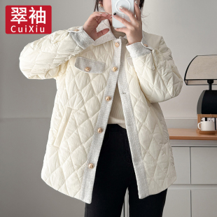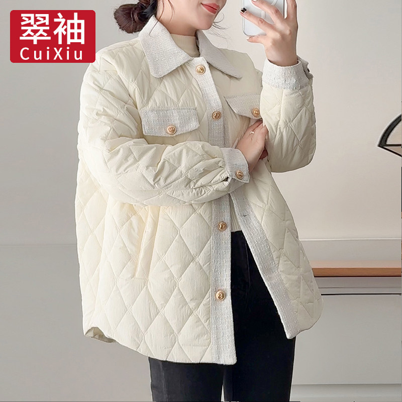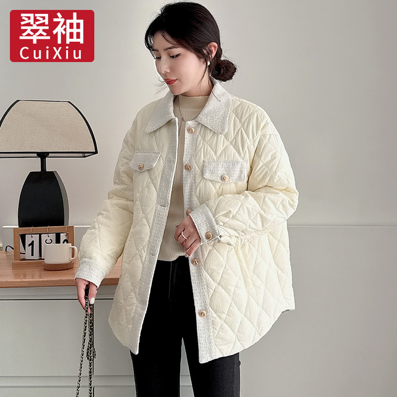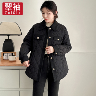翻领小香风棉衣菱格棉服女2025新款 女装 秋冬棉袄夹棉外套 大码 翠袖