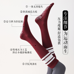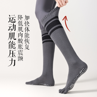 五指瑜伽袜子专业防滑女士普拉提长筒运动健身跑步压力分趾小腿袜