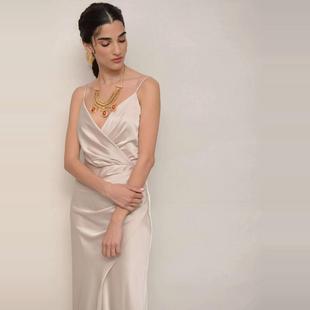 性感绝美香槟色缎面伴娘服礼服高级感显瘦深V鱼尾毕业典礼裙子