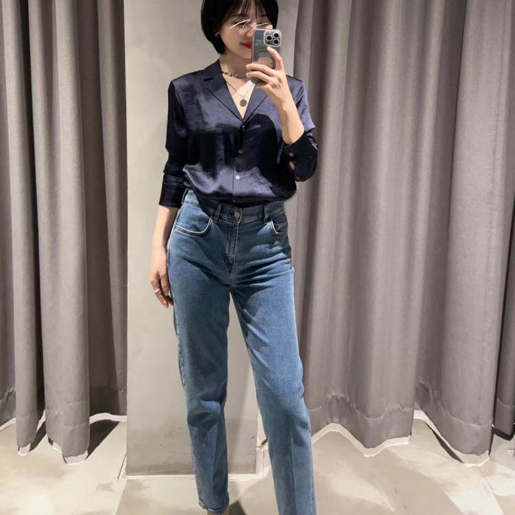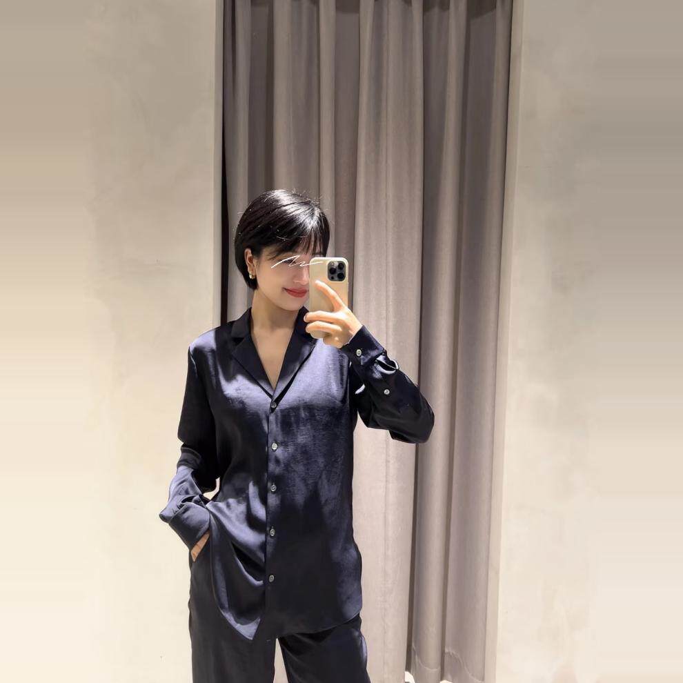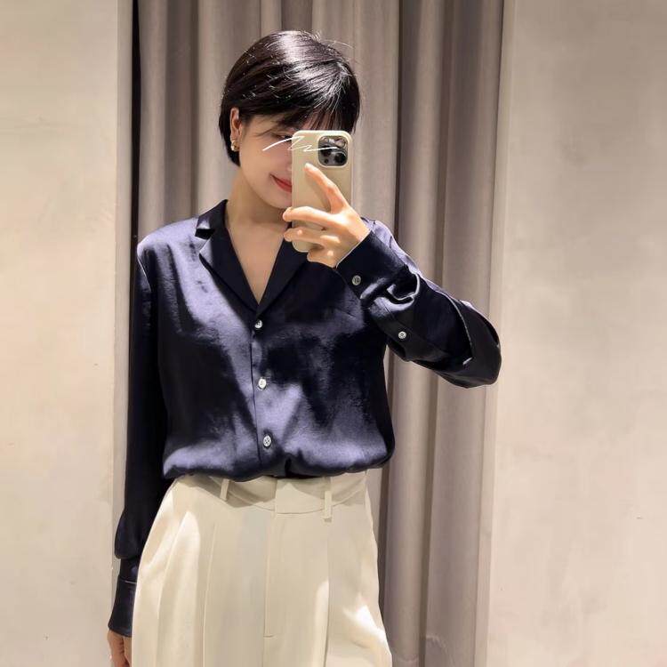 丝缎衬衫 领长袖 藏蓝色西装 女通勤气质职业穿搭衬衣 简约智性风