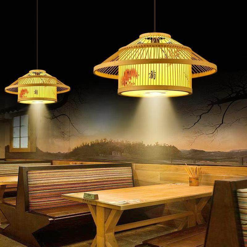 竹编火锅店中式 禅意灯笼酒店餐饮茶楼餐厅包间卡座吊灯饭店带射灯