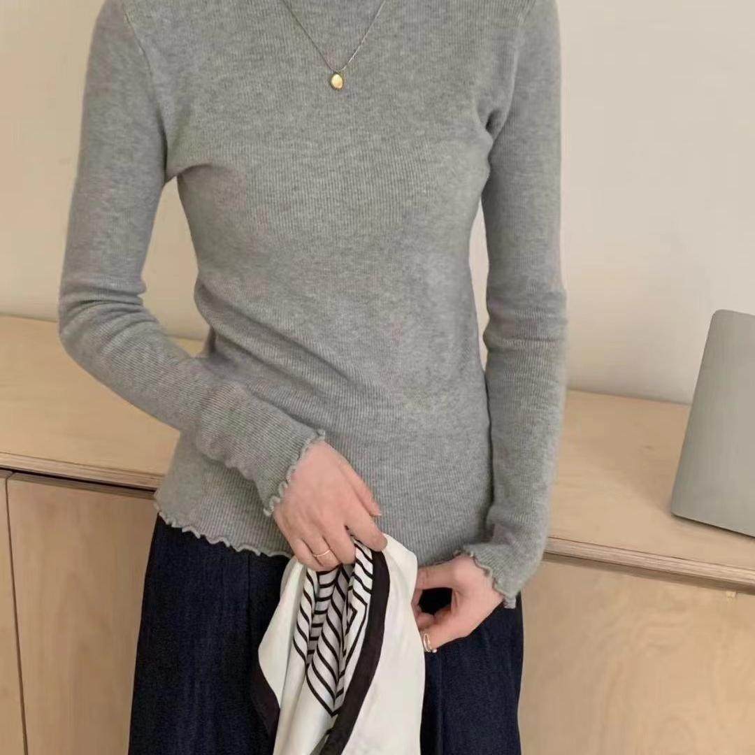 百搭内搭洋气套头针织衫 修身 花边领毛衣女秋冬打底衫 潮 花边领