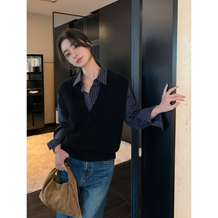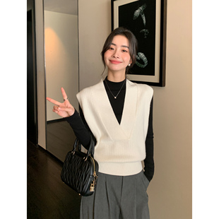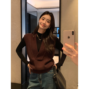 上衣 优质全羊毛灰色毛衣背心女设计感叠穿针织马甲无袖 Maven Lin