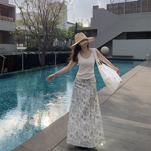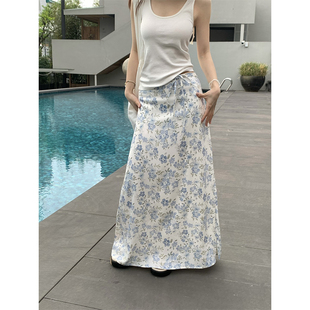 法式 显瘦碎花长裙春夏季 浪漫a字半身裙 秘密花园 黑奶酪BLACK