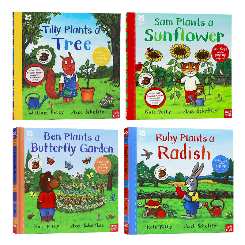 National 立体翻翻页 Sunflower Tree Scheffler自然植物绘本4册 英文原版 Butterfly Tilly Trust Radish Axel Plants Garden