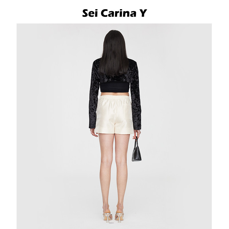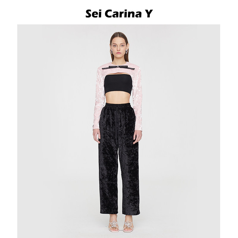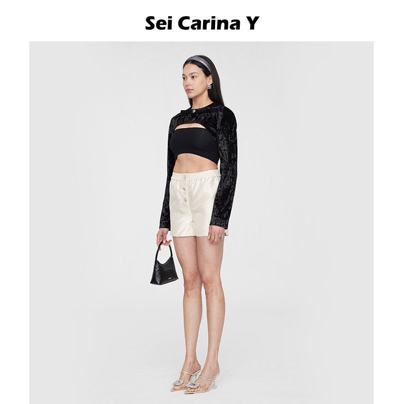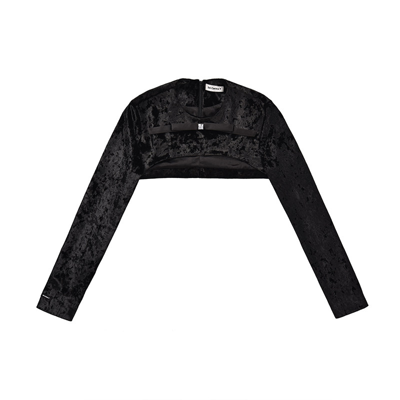 初秋上衣小众设计时尚 Sei 披肩女新款 Y方钻蝴蝶结丝绒长袖 Carina
